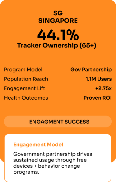 Singapore: The Engagement Success Story Singapore demonstrates the alternative model. With 44.1% fitness tracker ownership among older adults, driven by the National Steps Challenge providing free devices [8], the country shows how government partnership and engagement-focused strategies can drive sustained usage rather than churn.
