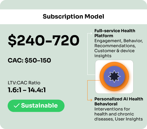 B2B Partnership Leverage Corporate wellness programs and insurance partnerships pay for proven health outcomes, not device sales. These relationships require demonstrated user engagement and measurable health improvements.