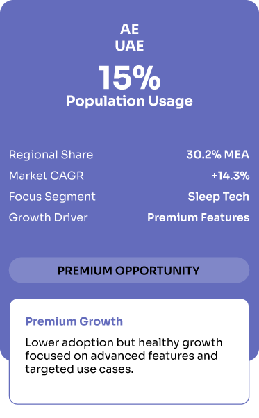 UAE: The Premium Opportunity The UAE represents 30.2% of the Middle East & Africa wearable market, with 15% of the population using fitness trackers in 2023 [9]. The market shows healthy 14.3% CAGR growth, suggesting that focusing on engagement rather than replacement drives sustainable expansion.